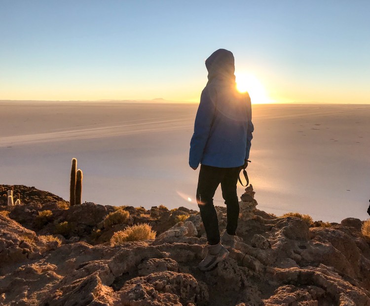 Po cudownej nocy w ciepłym pokoju pobudka o 4.30 była ciężkim doświadczeniem. Jeszcze cięższe było wyjście na dwór, w nocy temperatura spada poniżej zera, w ciągu dnia jest powyżej 20 stopni a słońce jest zabójcze (cały czas przebywamy powyżej 3500 m n.p.m.). Ale znamy cel i wiemy, że jest to tego warte: jedziemy zobaczyć wschód słońca na największym solnisku świata!