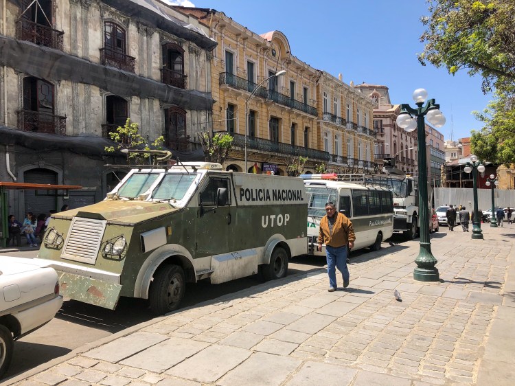 Poza więzieniem Boliwijczycy mają również ciekawy sposób radzenia sobie z nieodpowiednimi władzami, na jednym z placów na budynkach widać ślady po strzałach… Jest to jakieś rozwiązanie 🤔