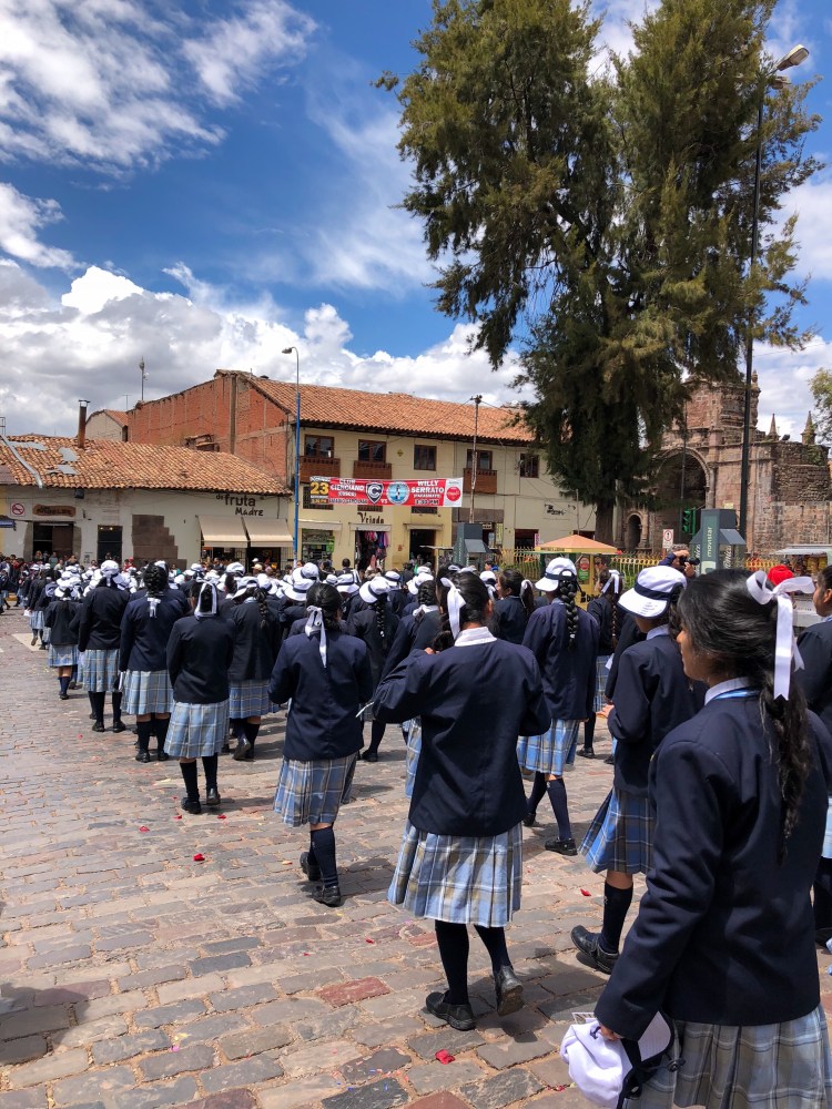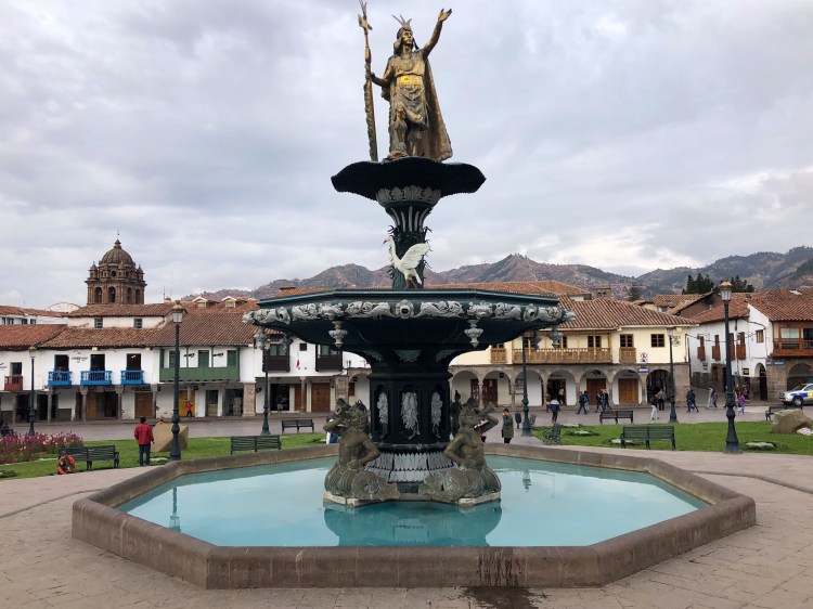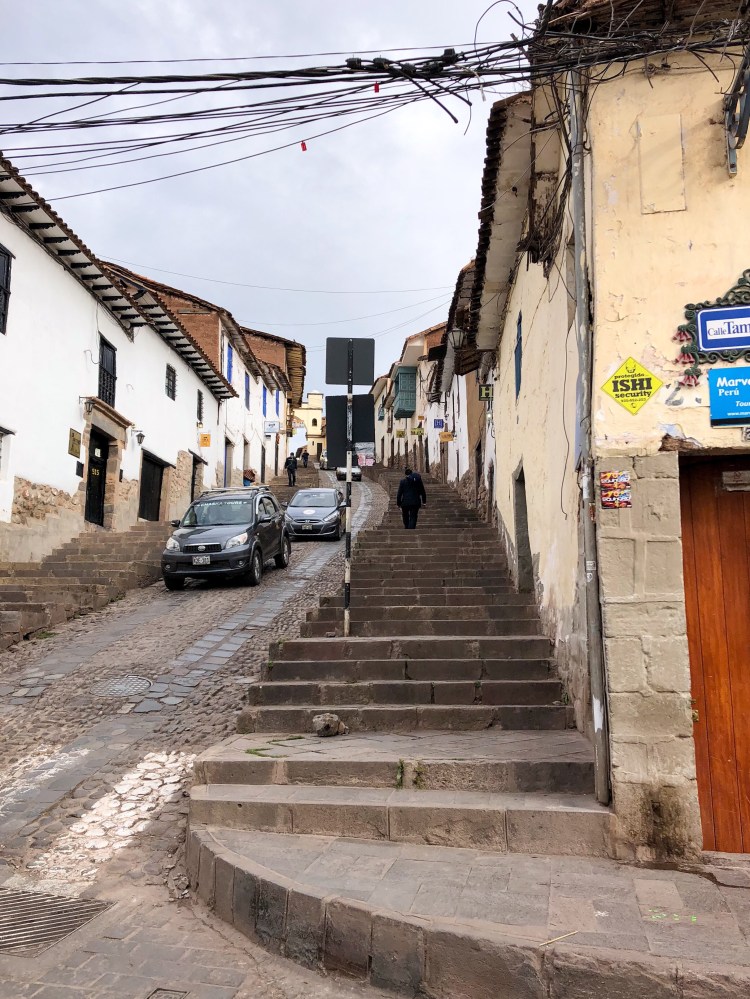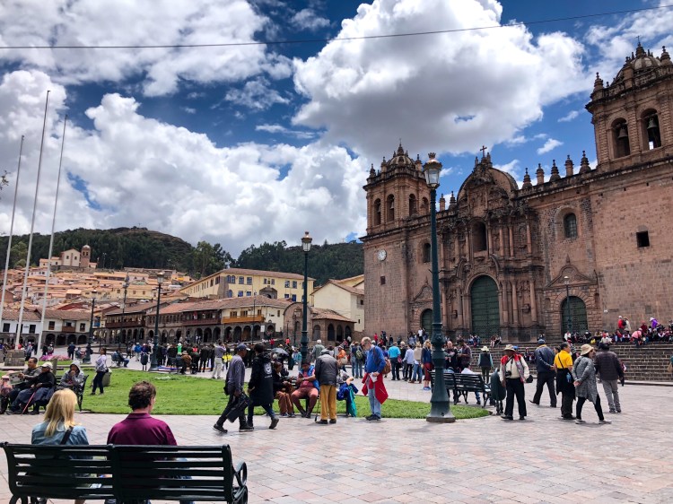 …w końcu docieramy do Cuzco. Jesteśmy o nieprzyzwoitej porze bo o 5 rano. Obserwujemy jak miasto powoli budzi się do życia. Aktualnie miasto to głównie baza wypadowa dla turystów wybierających się na trekking lub na Machu Picchu i aklimatyzujących się do wysokości. Miasteczko jest prześliczne i na pewno warto na nie poświęcić kilka dni jednak przez nasz napięty plan mamy tu tylko dzień. Standardowo wybieramy się na walking tour ale niestety tym razem nie trafiamy na najlepszego przewodnika i z wycieczki dowiadujemy się tylko gdzie który król mieszkał i ile miał dzieci. Trudno, resztę doczytaliśmy w przewodniku.
