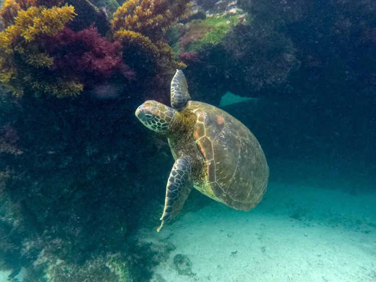 Lecąc na Galapagos nie mogłam się doczekać aż zobaczę wszystkie niesamowite zwierzęta. Nie spodziewałam się jednak, że to będzie takie łatwe. To nie jest tak, że trzeba gdzieś pójść żeby je zobaczyć, one są wszędzie, słonie morskie całymi dniami śpią w okolicach portów, małe pływają tam gdzie ludzie się kąpią żeby ich pozaczepiać. Iguany wędrują po plażach i wygrzewają się na chodnikach. Wszędzie krążą pelikany i inne gatunki cudnych ptaków a gdy chwycisz maskę i zanurzysz się pod powierzchnię wody zobaczysz żółwie, rekiny, płaszczki, koniki morskie i tysiące innych niesamowitych stworzeń.