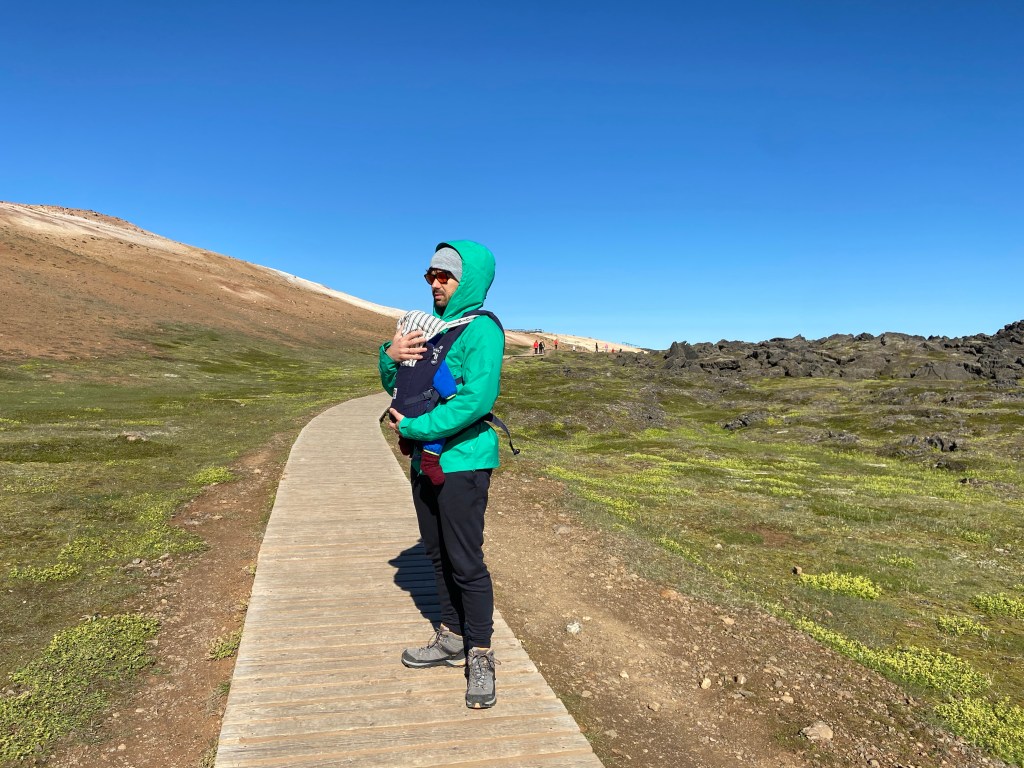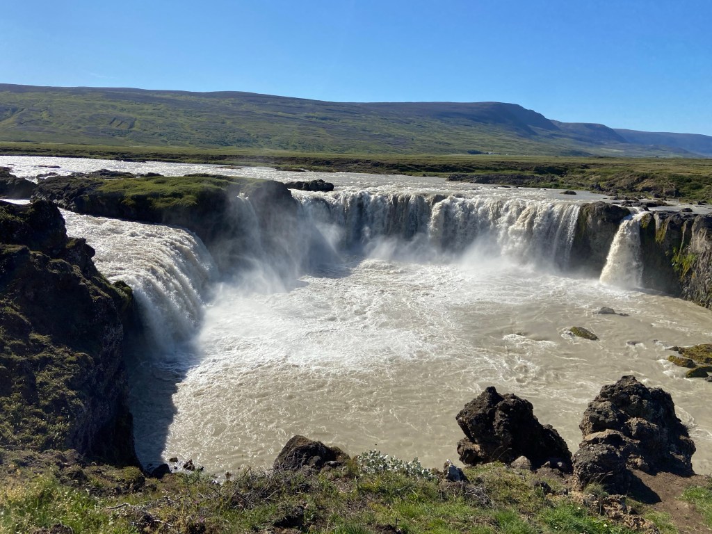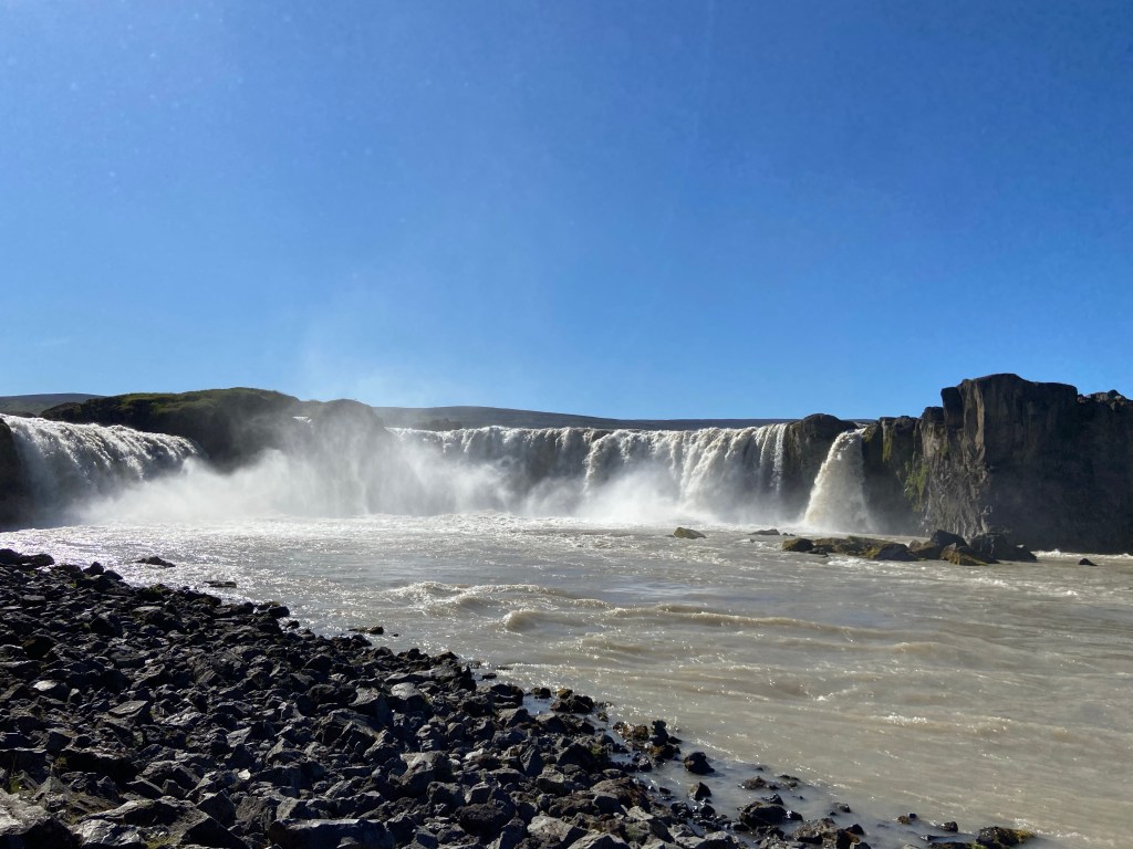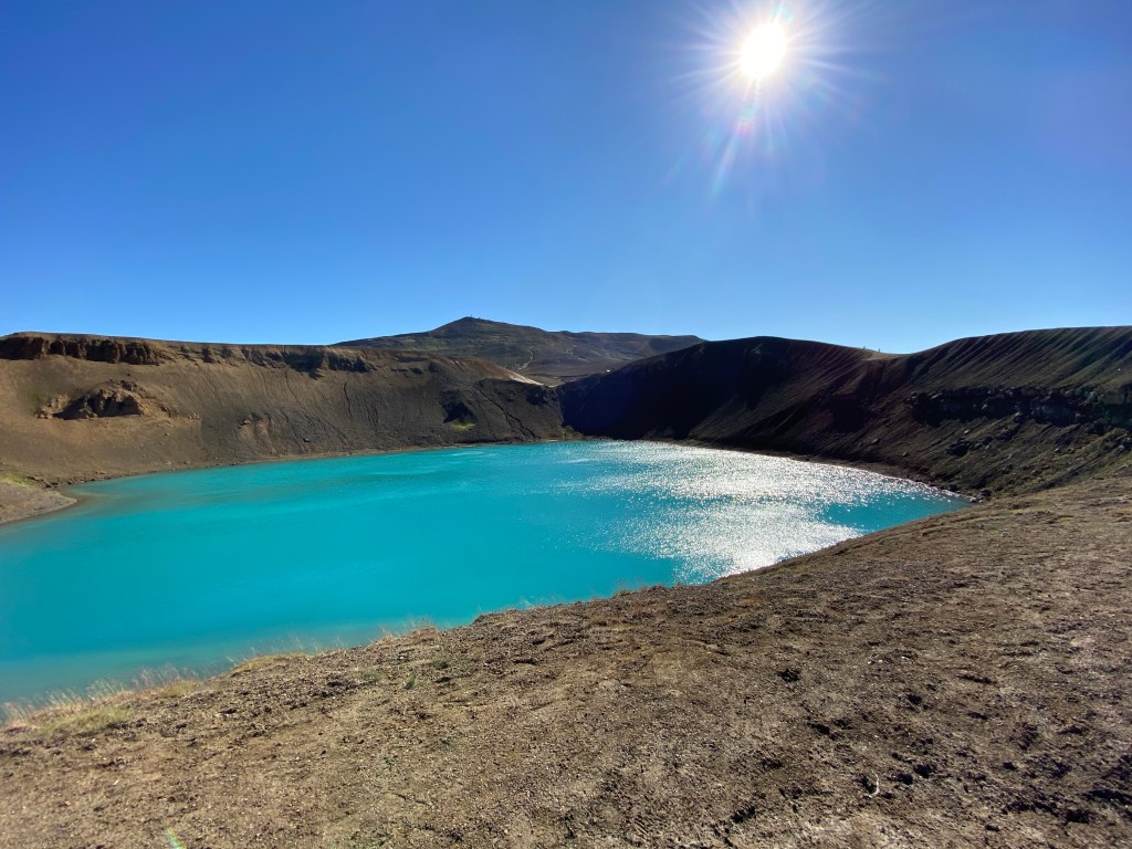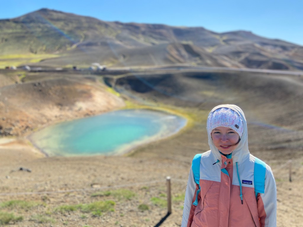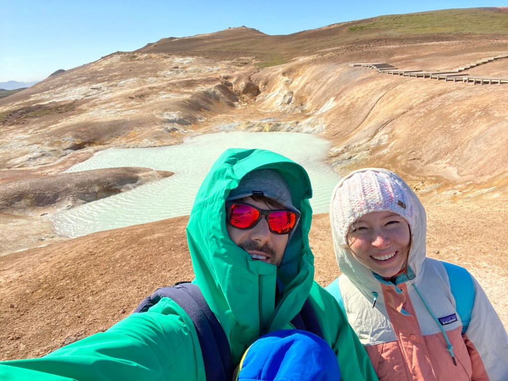Dobra passa trwa i nadal trzyma się nas słoneczko, niestety do słoneczka dołączył wiaterek urywający głowę – nawet w kieleckim takiego nie widzieli. Oglądaliśmy wulkany i kratery, w tym taki z niesamowicie niebieskim jeziorkiem w środku. Dziwne siarkowe miejsca przy których pieluchy Leona to perfumy. Zrobiliśmy piknik nad jeziorem Myvatn, a na koniec zobaczyliśmy piękny wodospad jednak nie zrobił na nas takiego wrażenia jak 2 pierwsze.
