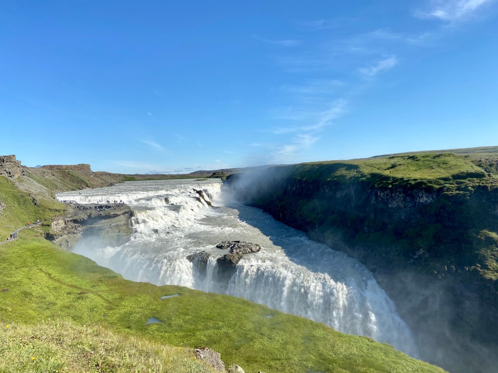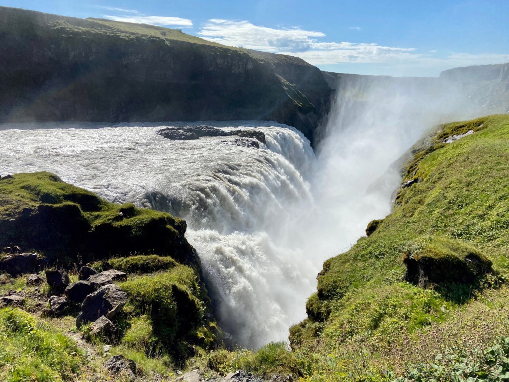 Zaczęliśmy od najdalszego punktu czyli wodospadu Gulfoss. Znany z olbrzymiej ilości wody, która przez niego przepływa. Średnio w ciągu sekundy 109 m³, ale wartość ta potrafi zwiększyć się nawet 20-krotnie. Wodospad na pewno imponujący ale nie wyszedł na prowadzenie w rankingu naszych ulubionych islandzkich wodospadów.