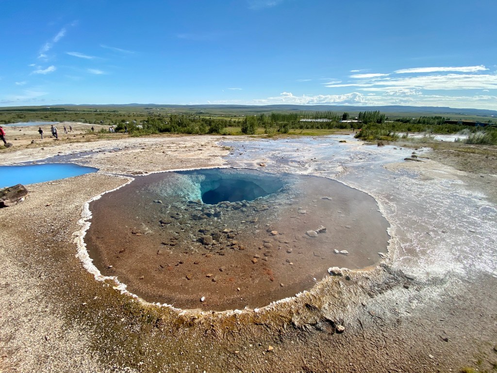Drugi punkt programu to dolina Haukadalur słynąca z geotermalnych źródeł w tym aktywnego gejzeru Strokkur. Wybucha regularnie co kilka minut i trzeba przyznać, że robi wrażenie. Plus kolor i czystość wody niesamowite.