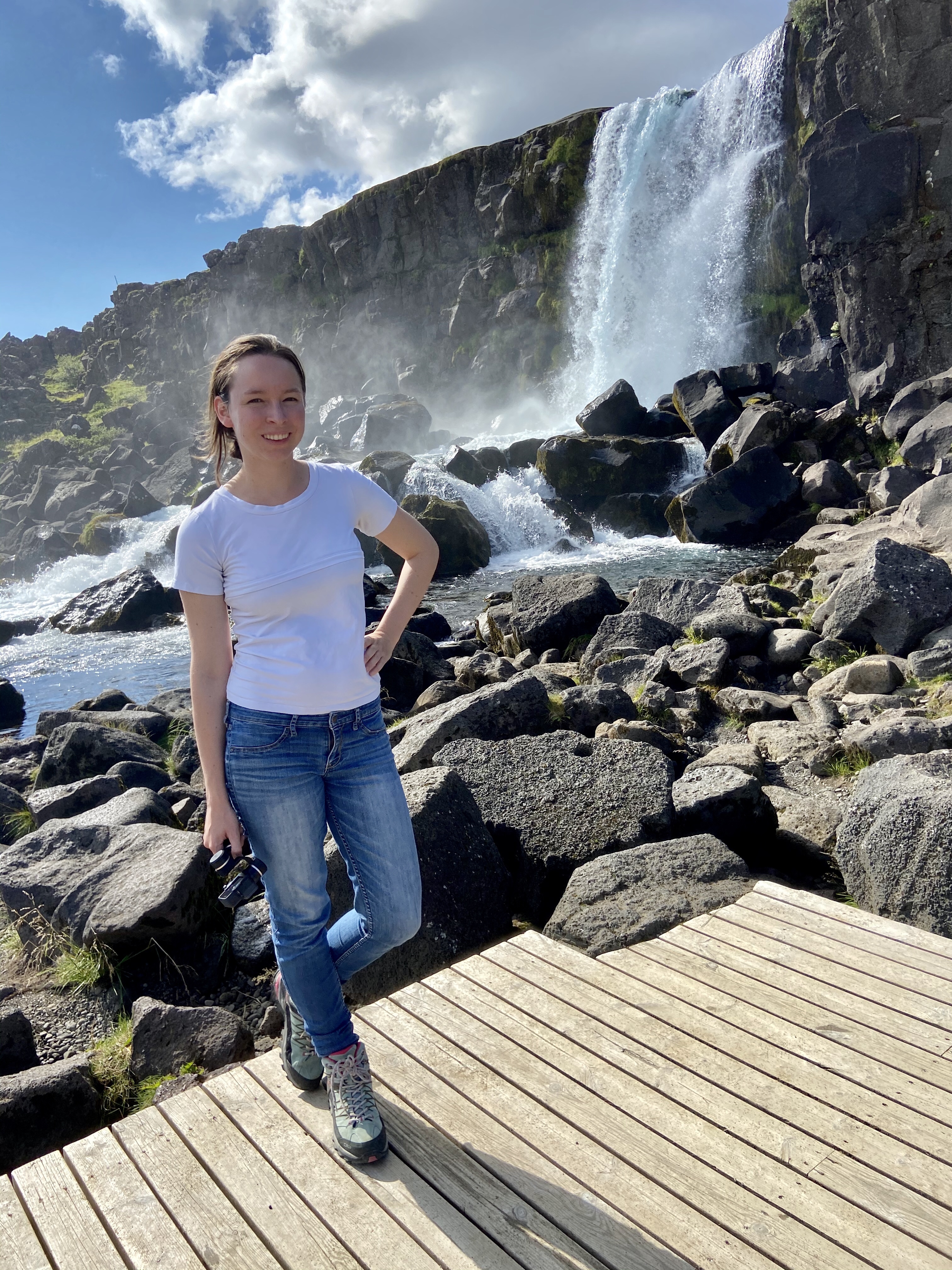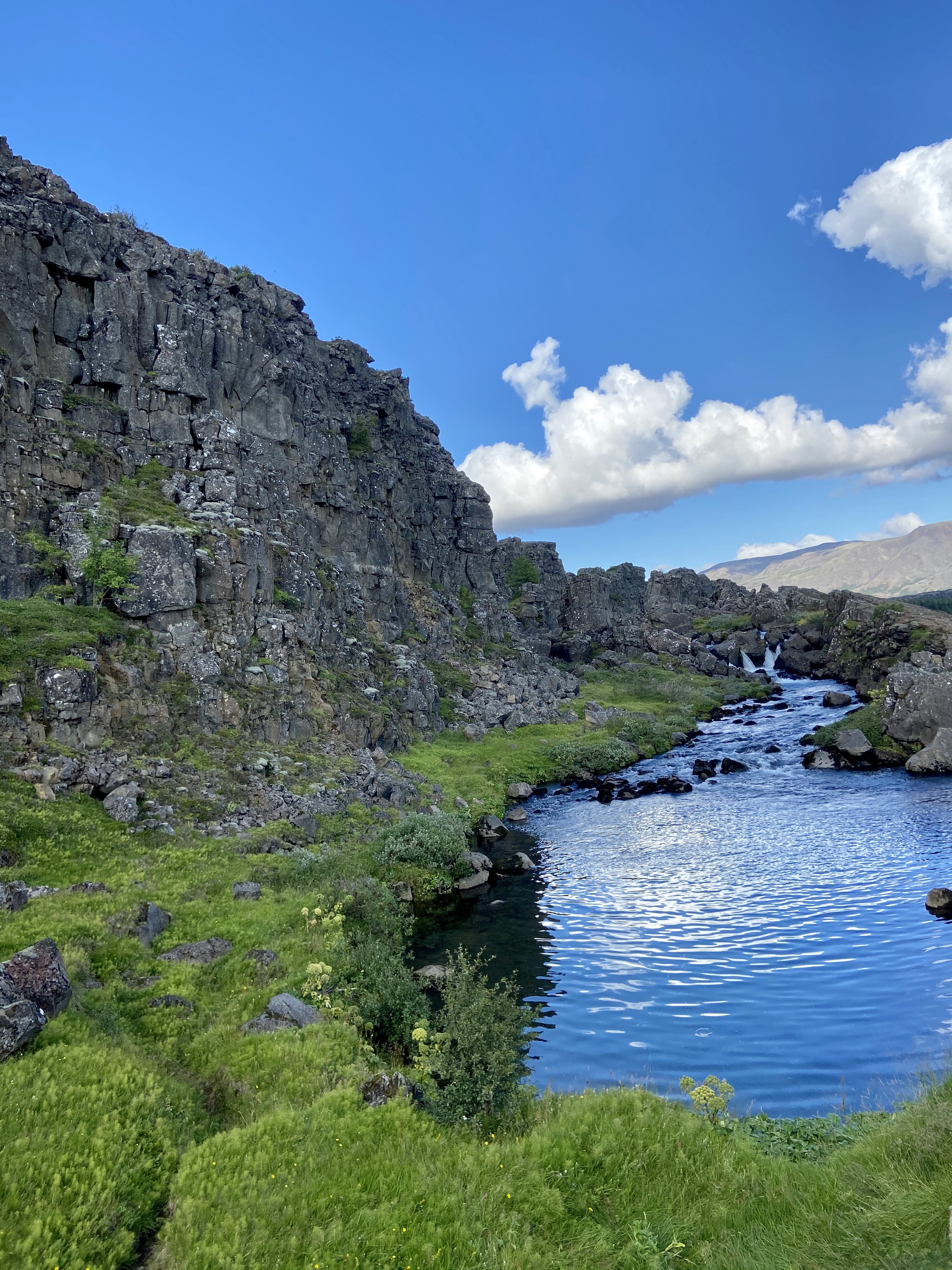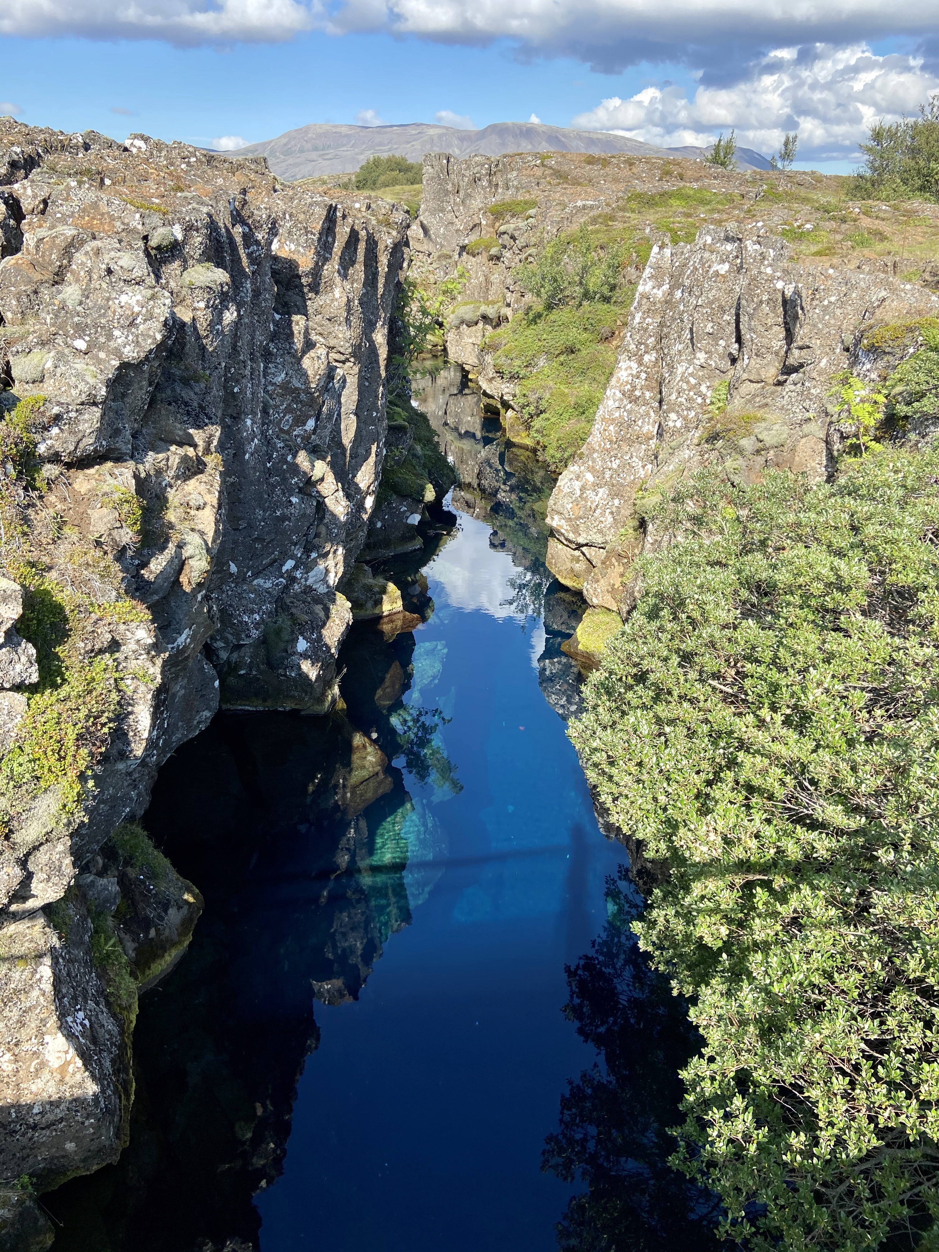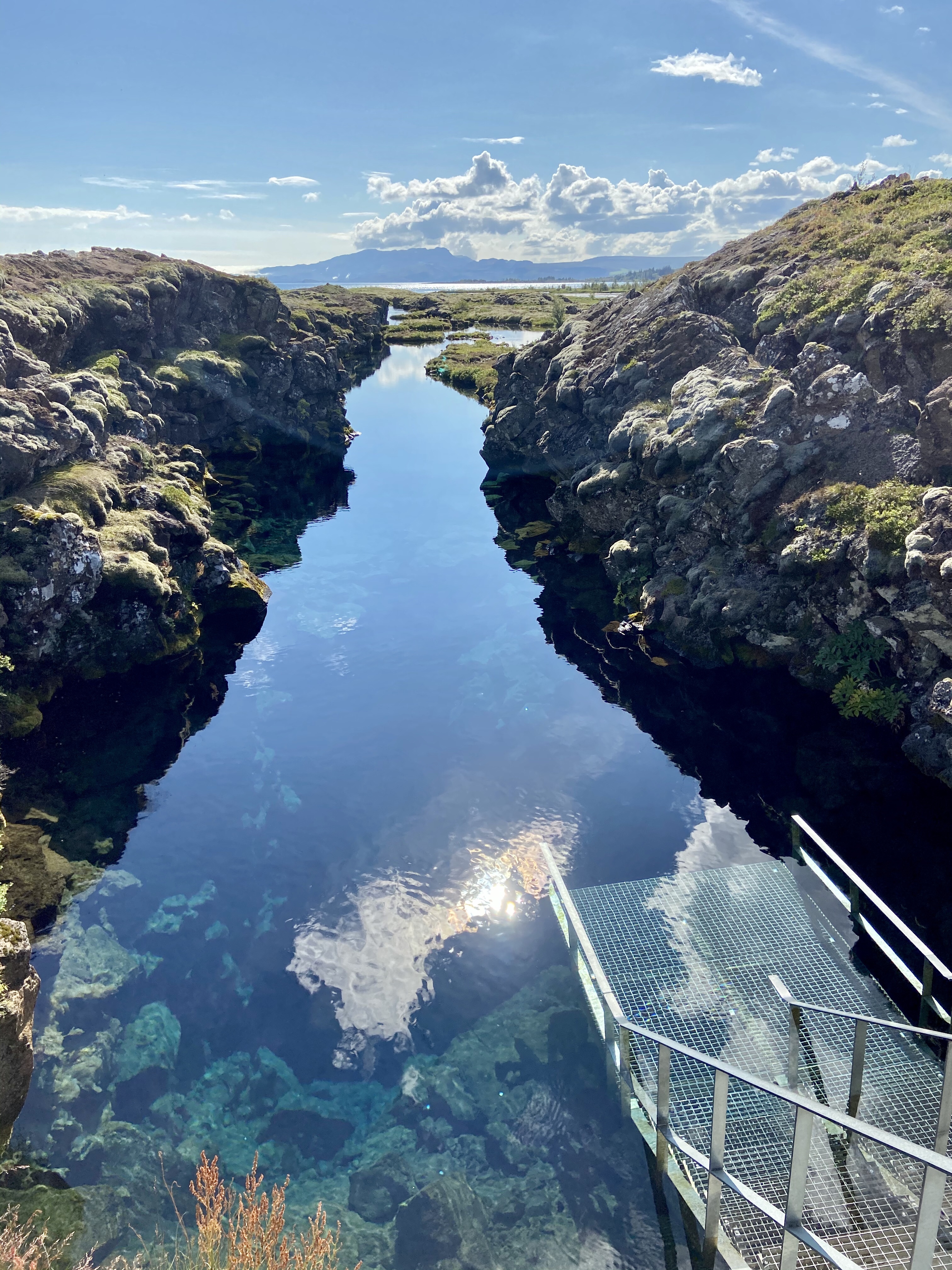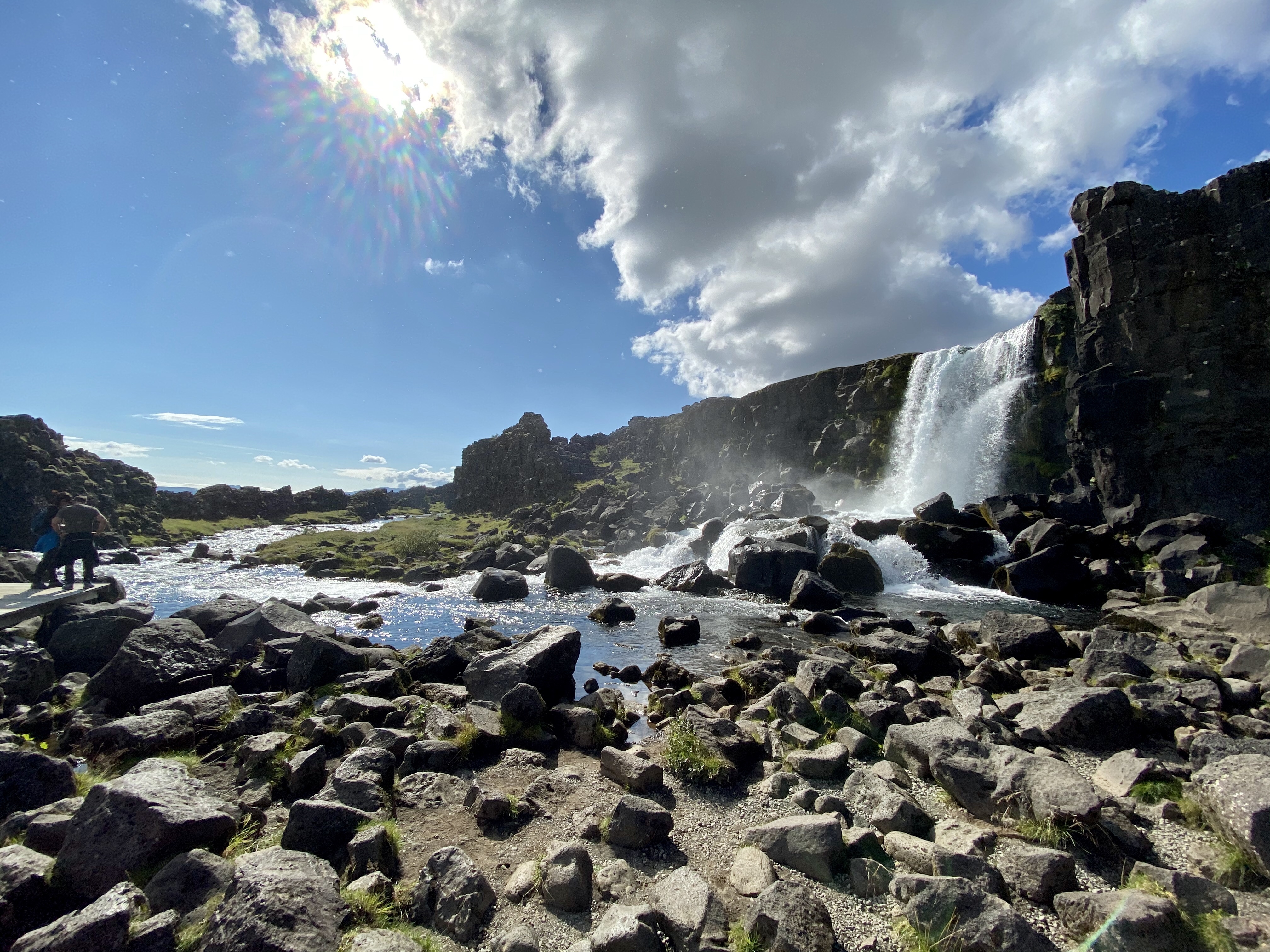 Trzecia i ostatnia atrakcja dnia dzisiejszego to park narodowy Þingvellir, ważny z 2 powodów. Po pierwsze ze względu na historię – w 930 roku to tutaj właśnie po raz pierwszy zebrał się parlament Islandii. Po drugie ze względu na niesamowite umiejscowienie geologiczne – dolinę szczelinową, bezpośrednio między północnoamerykańską i euroazjatycką płytą tektoniczną. Dzięki temu jest to jedno z niewielu miejsc na świecie, gdzie można spacerować pomiędzy kontynentami! Plus bonus, kręcili tu fragmenty gry o tron 😎.