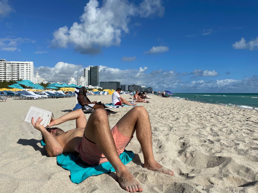 Miami beach polecamy, fajna wielka plaża, na pewno mielibyśmy z niej więcej radości gdyby nie twist, że Leon teraz nie chce stać na piasku 🤦♀️😂. Piasek to lawa i koniec kropka (nawet ten chłodny w cieniu).