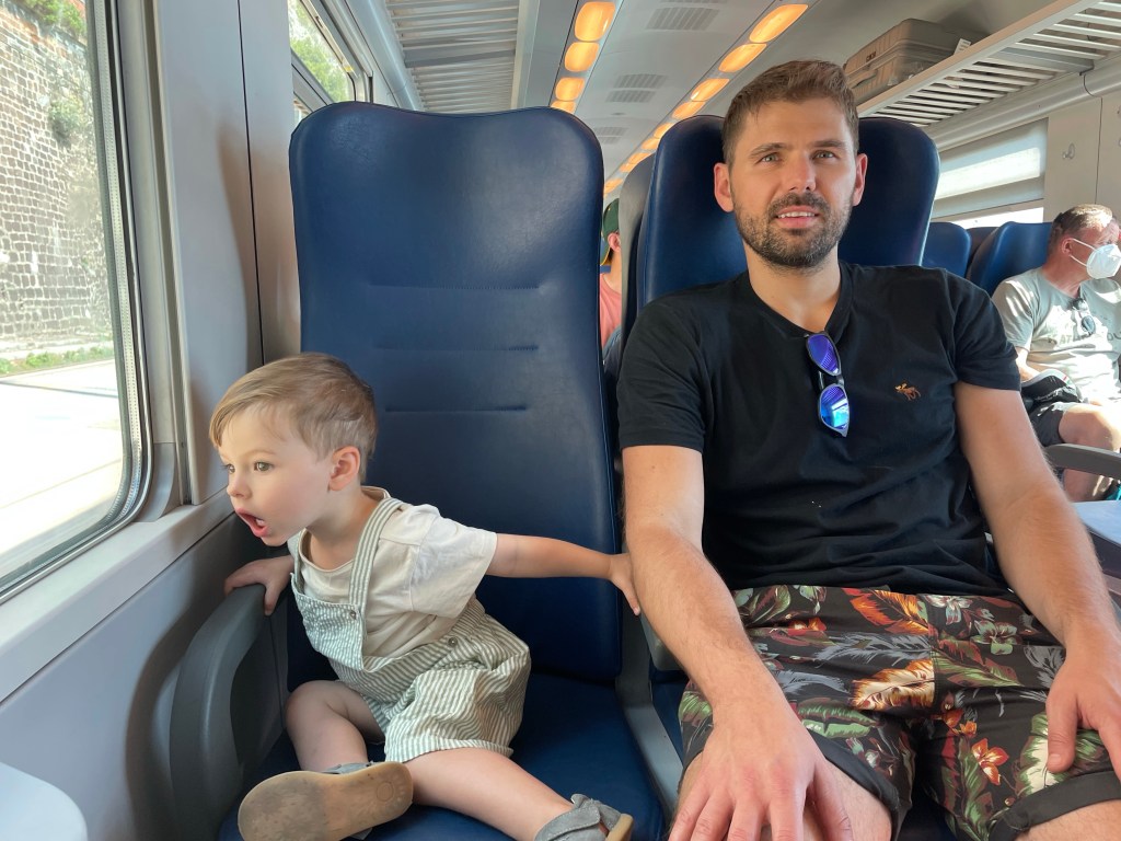 Do Cinque Terre najlepiej dostać się pociągiem z któregoś z okolicznych miast. Z Sestri Levante kursuje bezpośredni pociąg, więc skorzystaliśmy z tej opcji, dodatkowo zapunktowaliśmy u Leona miłośnika „ciuch ciucha”. Niestety sama podróż nie jest taka spektakularna, bo przez większość czasu pociąg jedzie przez tunel, ale odległość nie jest duża więc szybko docieramy.