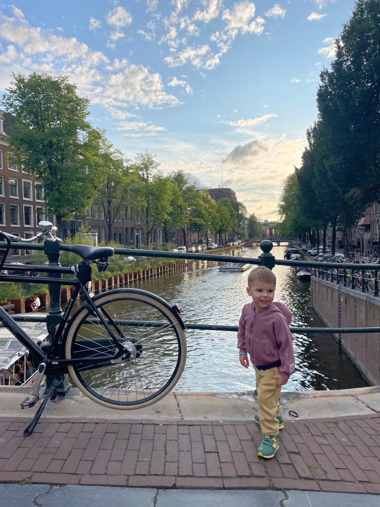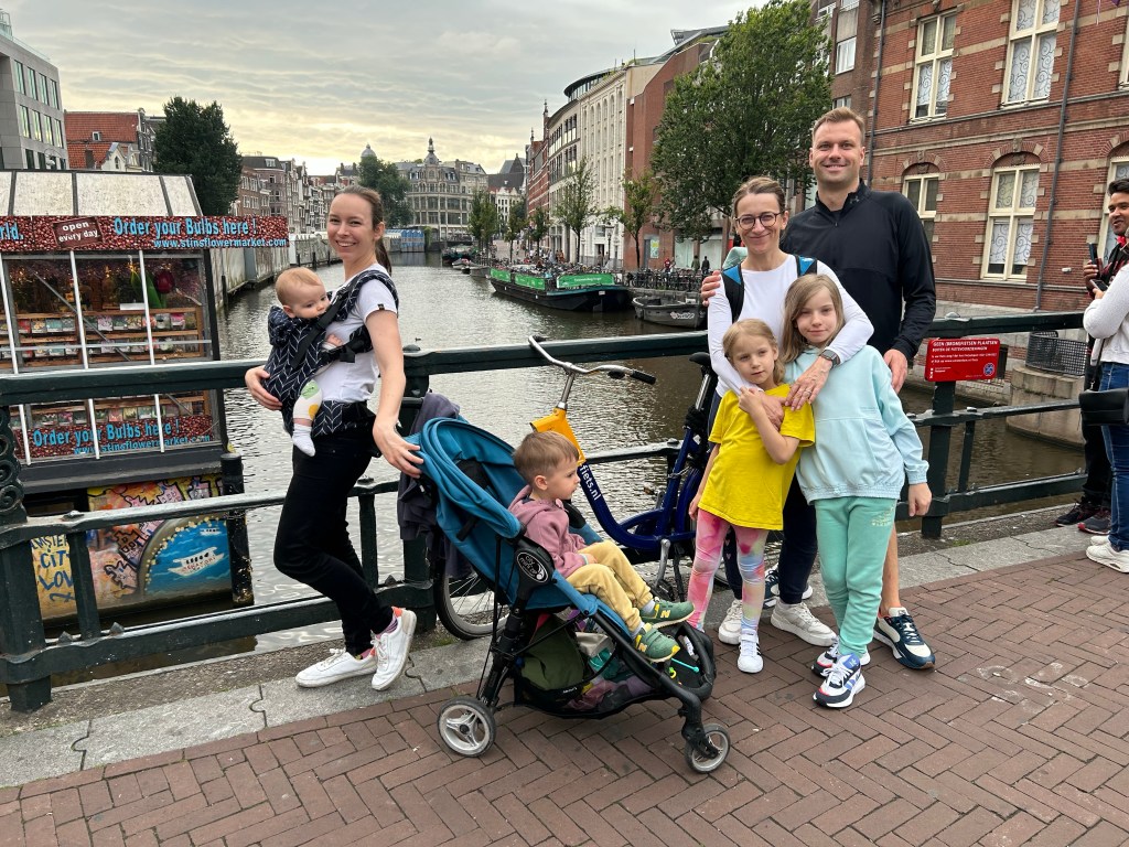 W Amsterdamie byliśmy 9 lat temu, kiedy odwiedzaliśmy Mateusza, więc Przemek ze swoją niesamowitą pamięcią porusza się tu oczywiście jakby tu został te 9 lat temu, ja z moim maślanym mózgiem zachwycam się kanałami jakbym pierwszy raz je widziała. Mamy za mało czasu i za bardzo jęczące dzieci żeby odbyć jakieś porządniejsze zwiedzanie, ale robimy sobie porządny spacer po centrum (wszystkie klamoty zostawiamy w lotniskowym hotelu uznajemy, że tak będzie najprościej logistycznie). Zjadamy pyszcze burgery, przysiadamy na soczek na klimatycznym placu i totalnie padnięci wracamy do hotelu. Jutro następna część podróży 😁.