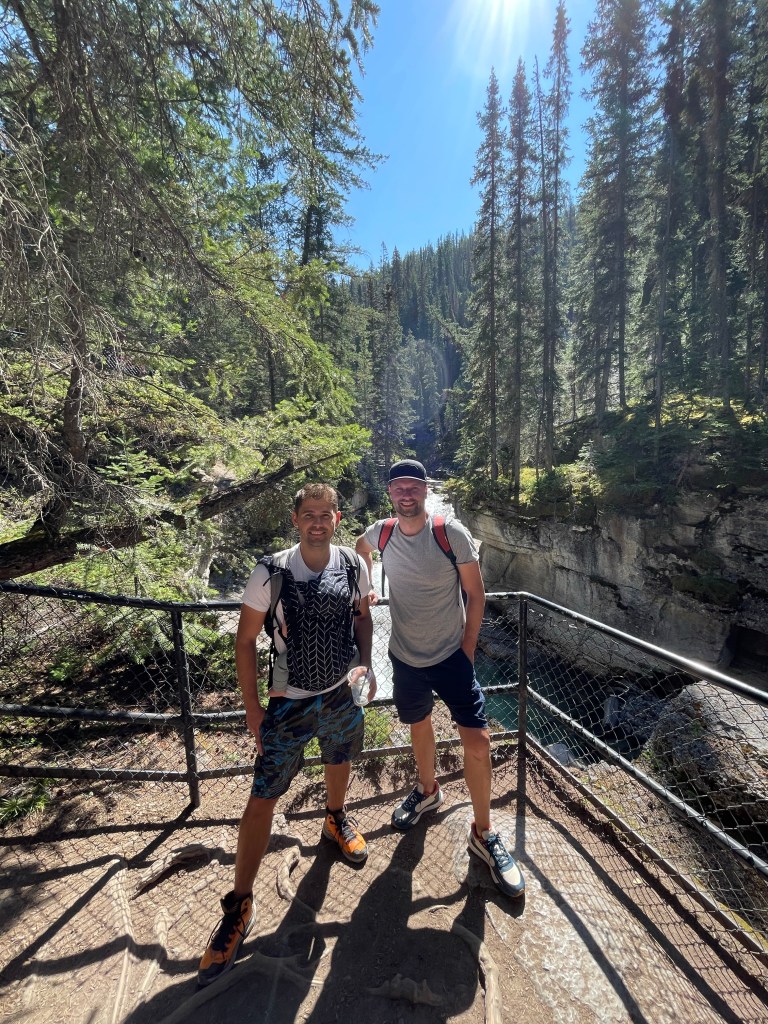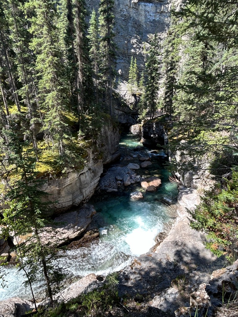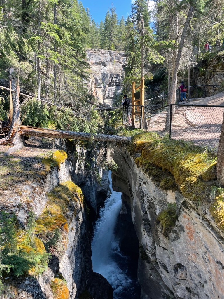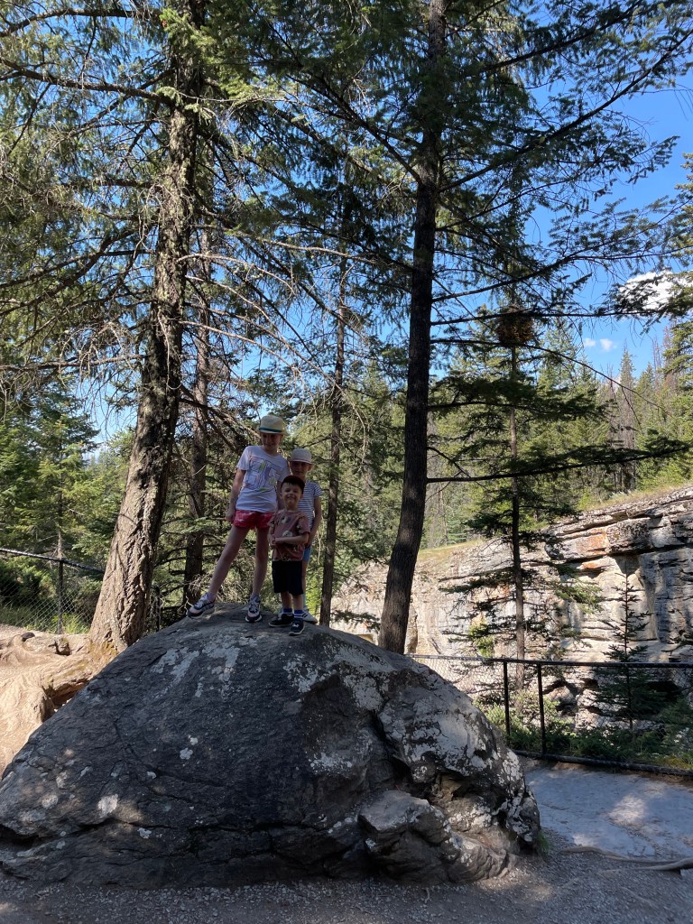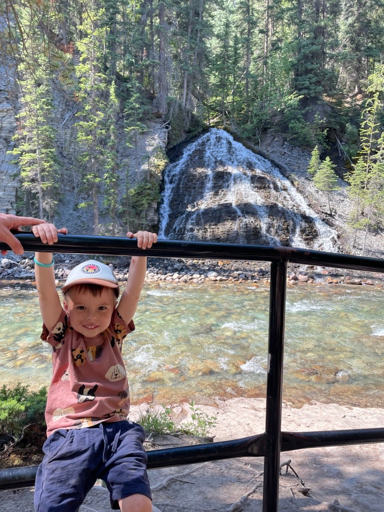 Na pierwszy ogień poszedł Maligne Canyon, czyli najgłębszy kanion w Jasper, w niektórych odcinkach ma aż 50 metrów głębokości. Cały czas idzie się wzdłuż kanionu a w ramach urozmaicenia do pokonania jest 6 mostów. Szósty był na tyle daleko położony, że zadowoliliśmy się pięcioma ;). Widoki po drodze są przepiękna, turkusowa woda, wodospady, niesamowite szczeliny. Bardzo polecamy tę atrakcję. I muszę dzisiaj pochwalić Leona bo był mega zuchem! Sam przemaszerował prawie całą trasę! Ogólnie oglądając kanion trzeba zrobić pętlę i wrócić do samochodu ale żeby nie przemęczać dzieciaków Przemek z Szymkami (i z dzielnymi dziewczynkami które zostały skuszone wizją lodów😂) zrobili trasę dookoła a ja z Leonem i Matyldą poczekałam na podwózkę rzucając z Leonem kamieniami do rzeki, był zachwycony.