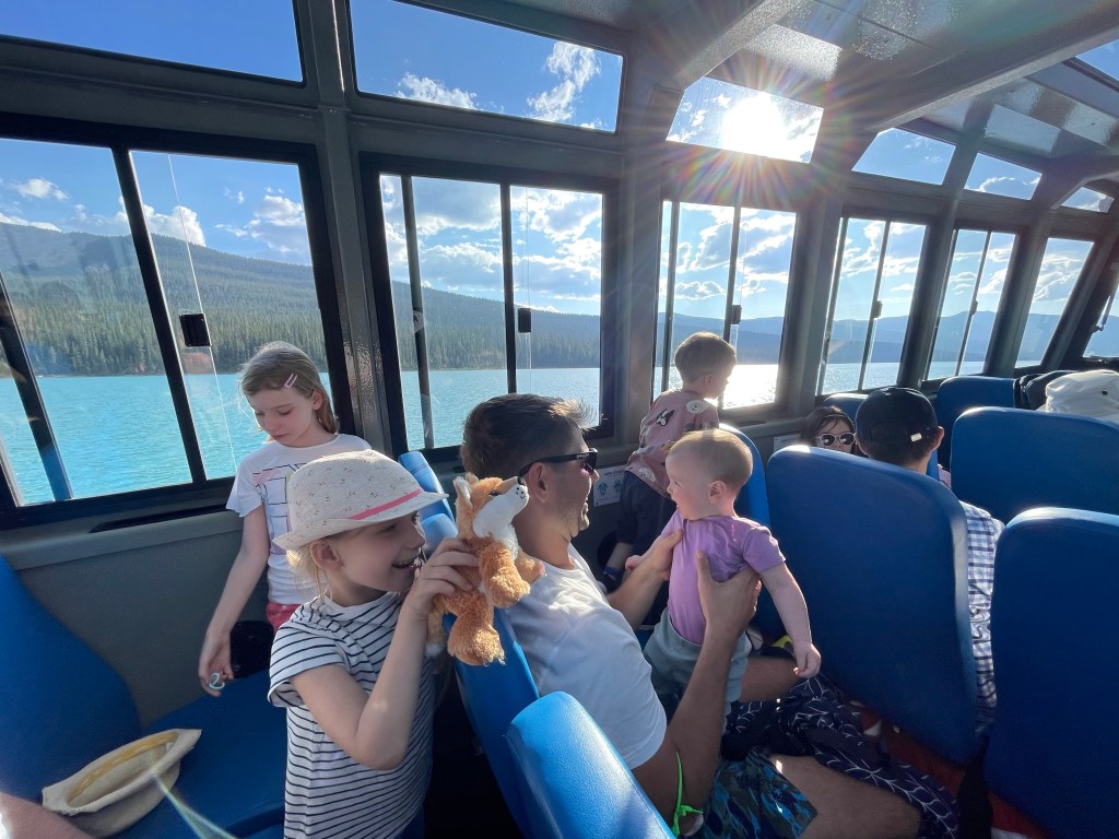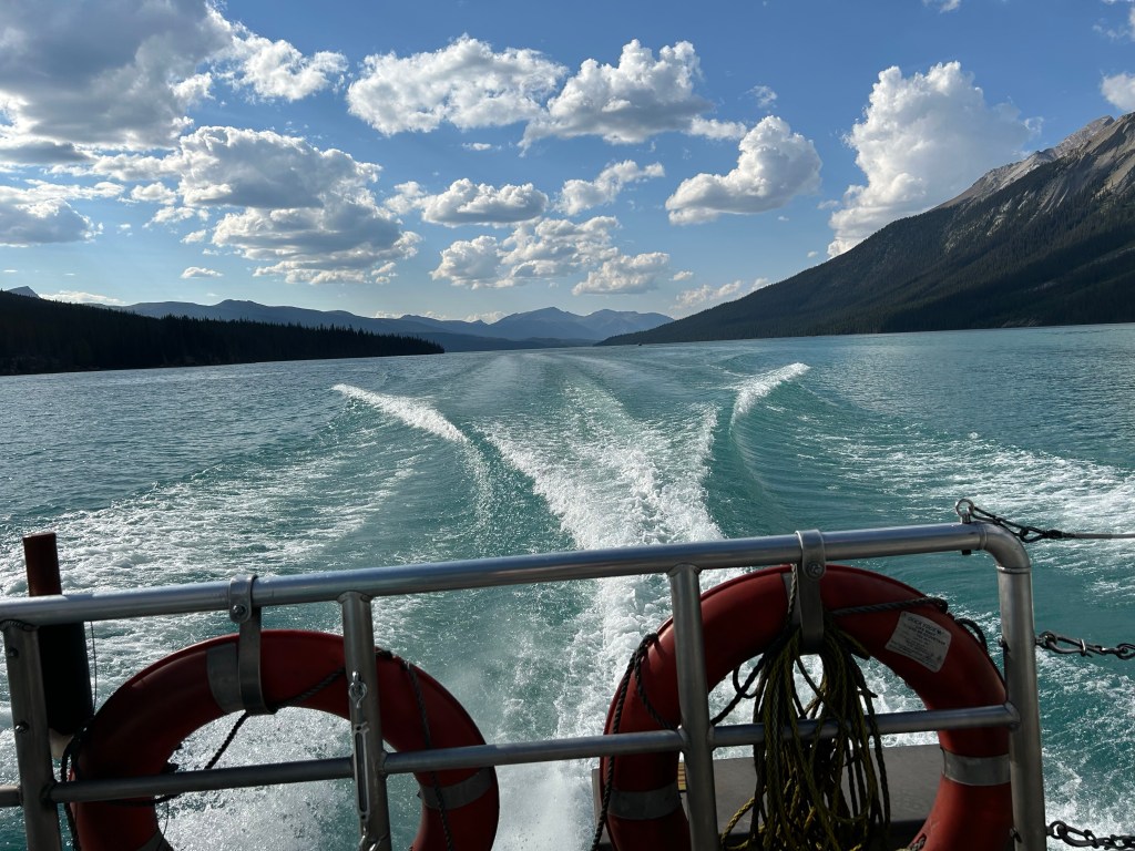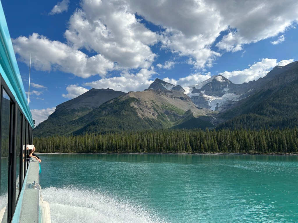 Prosto po kanionie spakowaliśmy się w samochody i ruszyliśmy nad Maligne Lake, tutaj zjedliśmy obiad z widokiem na jezioro i ruszyliśmy na rejs turkusowym jeziorem. Celem rejsu jest była Spirit Lake, wyspa a raczej cypel, która służyła a nawet nadal służy „Stone people” – takiej nazwy używał przewodnik, do odprawiania rytuałów ozdrawiających. Dookoła jeziora znajdują się 4 lodowce, którym zawdzięcza ono swoją niesamowitą barwę. To dzięki temu, że lodowiec wolno się przesuwając kruszy kamienie i tworzy mączkę, jeziora lodowcowe mają tak niesamowite kolory. Było absolutnie przepięknie i nie mogłam nie myśleć o moim ukochanym dziadku, który zawsze śledził nasze poczynania na blogu a po powrocie szczegółowo ze mną wszystko omawiał. Niedawno od nas odszedł a wiem jak bardzo by mu się podobał ten krajobraz bo kochał góry całym sercem ❤️.