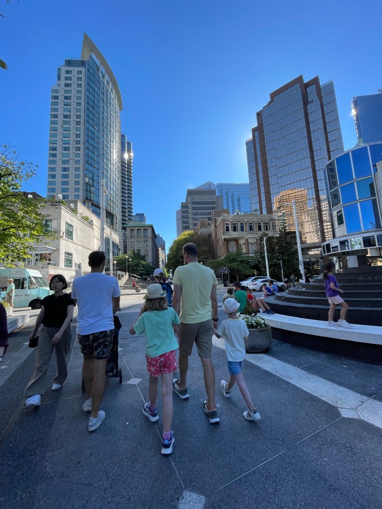 Na ostatnie 2 dni naszej kanadyjskiej przygody wracamy do Vancouver. Tym razem zatrzymujemy się w Hiltonie w samym centrum miasta. Człowiek się robi rozrzutny na ostatnią noc 😂. Mamy przepiękny widok z okien i ku uciesze dzieciaków basen (który też widzimy z okna, więc wieczorny argument, że basen już śpi nie zda egzaminu), miejsce idealne. Jako pierwszy punkt programu po przyjeździe atakujemy japadog, japońską wariację hot doga, wymyśloną w kanadzie 😂 jako ciekawostkę dodam, że pizza hawajska, która podzieliła świat na pół, również została wymyślona w tym niesamowitym kraju , wiec może swojej kuchni nie mają oryginalnej, ale pomysłów na inne im nie brakuje😁. Po basenie i spacerku widokowym uderzamy ponownie na sushi ale znowu nie możemy dogadać się z azjatycką obsługą, część jedzonka jest pyszna ale Leon niechcący dostaje maki z pieczoną skórą łososia 😳smakuje jak brzmi 🤣.