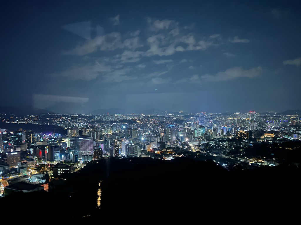 Następnie udaliśmy się do kolejki linowej, która wjeżdża na wzgórze Namsan z punktem widokowym. Celowaliśmy w zachód słońca ale kolejka do kolejki była godzinna, odkryliśmy to po zakupie biletów, więc wjechaliśmy już w półmroku i obserwowaliśmy nocne miasto. Przy zjeździe na dół dokonał się koszmar każdego rodzica czyli Matylda zrobiła sobie drzemkę o 18 😱. I to była nasza noc z głowy 😂. Na kolacje zaserwowaliśmy dzieciakom płatki z mlekiem już w hotelu i uśpiliśmy ich tylko po to aby o 1 mieć pobudkę 🤦♀️.