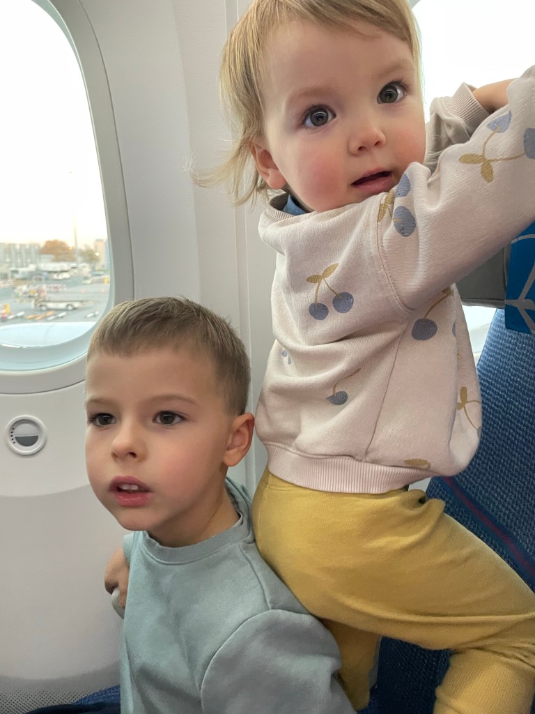 Podróż przeżyliśmy, chciałoby się powiedzieć „doskonale” ale samo słowo „przeżyliśmy” będzie bardziej akuratne. Dzieciaki były mocno podekscytowane i kiedy na pół godzinnym locie do Wrocławia pytania „czy daleko jeszcze” padały co minutę to wiedzieliśmy już, że łatwo nie będzie. Wprawdzie pytaliśmy jeszcze przy boardingu czy nie ma jakiś wolnych miejsc w samolocie żeby rozsadzono nas od dzieci ale polityka bezpieczeństwa nie pozwala na takie manewry, dziwne 😂. Kiedy już trochę opanowaliśmy dzieciaki w samolocie przyszedł czas żebym ja wprowadziła zamieszanie. Przyszła kolacyjka, wiecie te gorące pojemniczki przy wiercącej się Matyldzie. Moja strategia była prosta najpierw nakarmić ją konkretami a później dać bułę z dżemem żeby sama zajęła się jedzeniem i zjeść w tym czasie. Jak wymyśliłam tak zrobiłam, bułę na bogato posmarowałam dżemem truskawkowym jak sądziłam i podałam Matyldzie, która wzięła wielkiego gryza. Krzyk, który wydobył się z Matyldy odwrócił głowy całej gromady Koreańczyków siedzących dookoła, potem zaczęło się plucie na wszystko i wszystkich a potem moje paniczne wycieranie jej ze środka budzi dżemiku który okazał się ostrą pastą z papryczek chili, próbowałam jej dać cokolwiek żeby zagryzła smak, zgodziła się jedynie na masełko także łyżeczką karmiłam ją masłem 🙈. Matka roku. Sytuacja była opanowywana z pól godziny. Godzinę później płakaliśmy z Przemkiem ze śmiechu na wspomnienie „dżemiku” a Matylda bierze teraz jedzenie tylko od taty 🤷♀️.