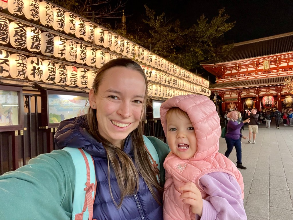 Ponieważ dzień nam się już powoli kończył wróciliśmy w okolice naszego hotelu. A hotel nie ukrywam mamy spektakularny, udało mi się upolować w dobrej cenie hotel w dzielnicy Asakusa z widokiem na świątynie Sensō-ji i robi to super wrażenie, szczególnie z tarasu na najwyższym piętrze ❤️. Pospacerowaliśmy jeszcze trochę i wróciliśmy zakończyć ten dzień, gdy dzieciaki zasnęły zrobiliśmy sobie jeszcze z Przemkiem romantyczną kolację z sashimi z marketu (spektakularne serio) w przetrzeni między łazienkami (jedyne oddzielone miejsce w naszym pokoju) 😂.