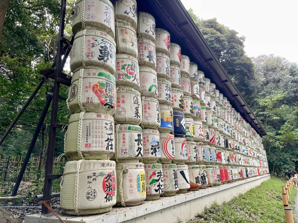 Nowy dzień nowi my, nakarmiliśmy dzieciaki jogurtami i wyruszyliśmy. Najpierw zaopatrzyliśmy się w drugie śniadanie w pobliskim sklepie i pojechaliśmy do Shinjuku Gyoen National Garden, tutaj podziwiliśmy tutejszą przyrodę, zrobiliśmy piknik (uzależniłam się od onigiri – takie trójkątne sushi trochę jak kanapka do pałaszowania na szybko), poturlaliśmy się z górki, wypiliśmy kawkę, niektórzy z nas świąteczną (nie zdradzę kto, żyjcie w niepewności moi czytelnicy). Po tym miłym poranku zebraliśmy się do świątyni Meiji-jingū poświęconej deifikowanym (cokolwiek to znaczy 😂) duchom cesarza Meiji i jego żony, otoczonej świętym lasem. I to ten las zrobił na mnie największe wrażenie, czułam się jak w baśni wśród tych wielkich gęstych drzew i bram Tori dodających niesamowitego klimatu.