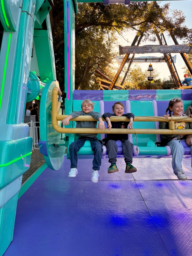 Dzieciaki skaczą z atrakcji na atrakcję, energia level 1000.